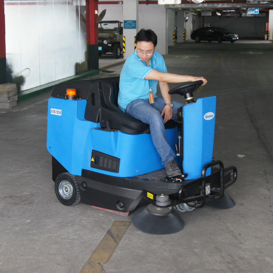 Gadlee GTS1250駕駛式掃地機性能卓越,清掃效率高達8750m2/每小時,配備重工型過濾系統(PTFE)比傳統過濾系統提供高達6倍壽命,專為大面積的室內外清掃任務而設計,如廠區外道路,工業廠房,站臺,大型物流倉庫等等。