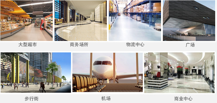 大型物流配送中心、工礦企業、學校、體育中心、廣場、公園、博物館、汽車站、火車站、飛機場、停車場、碼頭、大型生活小區、街道、商業中心、步行街等。